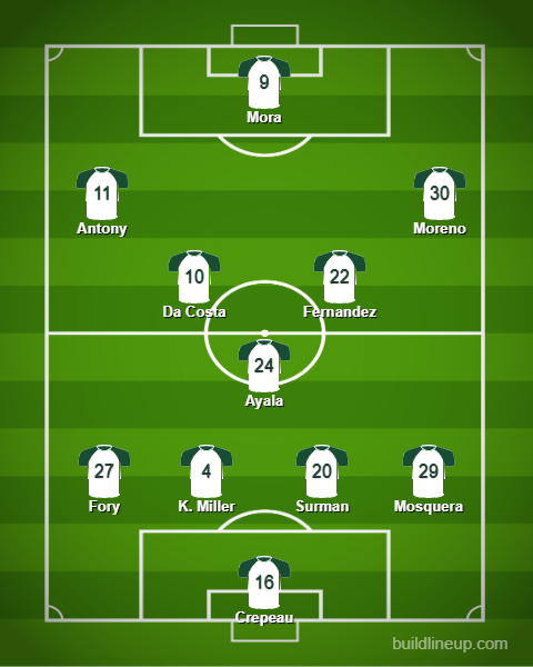 A midfield of Ayala, Da Costa, and Fernandez might be best near term. Ortiz can rotate in for Ayala or Fernandez, Moreno or Fernandez can start for Da Costa sometimes. We don't necessarily need a true 10 if we've got 2 8s and someone above them takes on finishing. It would be great if someone in midfield would actually take shots and score goals though. Mora, Jona, Moreno, and Antony are all inconsistent for different, sometimes excusable, reasons. Chance creation below them is a factor for sure, but we are still missing the shots from distance that you credit Moreno for, late runs into the box, runs across the top of the box, and build up through the middle (which you've alluded to in asking Ayala to make more direct passes). I think this is a systemic problem, not just individual players, though I concede Da Costa's disposition really does seem to be a factor.